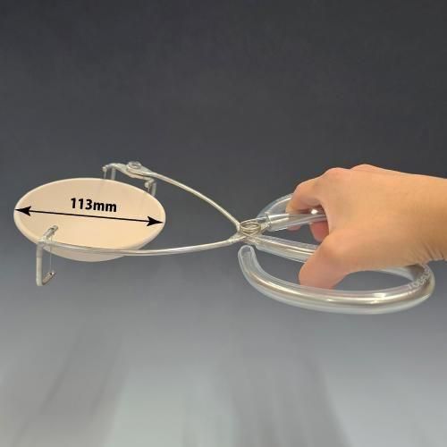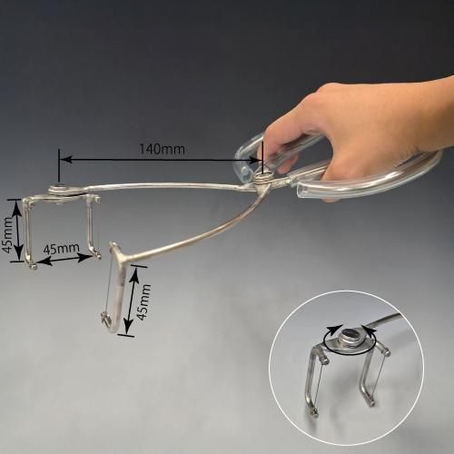 釉掛けばさみ A9-10YP【Φ100皿横用】 職人が一丁づつ制作しており、ステンレス製(SUS304)で錆にも強い高品質な釉掛けばさみです。 皿を横から掴むタイプで、見込みの下絵に針を落としたくない場合等にご使用頂けます。 直径0.5mmのステンレスワイヤーで支えるため、製品との接触面を最小限に抑えることができます。 地元の陶磁器メーカーでも広く使われており、プロ・アマ問わずご使用頂けます。 ツメ・ハサミの形状と寸法は写真をクリック拡大してご確認下さい。 寸法は多少の誤差がありますので、余裕を見てお選び下さい。 >>同じサイズの皿を横から掴むトングタイプはこちら C7-10Y【Φ100皿横用】 >>同じサイズの皿をV字受で挟むトングタイプはこちら B1-10V【Φ100小皿用】 >>同じサイズの皿をT字受で挟むトングタイプはこちら B1-10T【Φ100小皿用】 ※参考:重量 240g ---------------------------- 【送料について】 釉掛けバサミは軽量ですがかさばりますので、送料は重量ではなく梱包寸法によって決まります。
