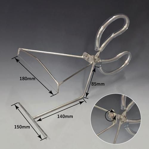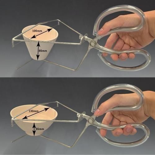 釉掛けばさみ Y2-18-H85【Φ150皿鉢用】 職人が一丁づつ制作しており、ステンレス製(SUS304)で錆にも強い高品質な釉掛けばさみです。 上部は、可動式で様々な形状に対応できます。 直径0.5mmのステンレスワイヤーで支えるため、製品との接触面を最小限に抑えることができます。 地元の陶磁器メーカーでも広く使われており、プロ・アマ問わずご使用頂けます。 ツメ・ハサミの形状と寸法は写真をクリック拡大してご確認下さい。 寸法は多少の誤差がありますので、余裕を見てお選び下さい。 >>同じサイズの皿をT字受で掴むタイプはこちら A8-15T【Φ150皿鉢用】 >>同じサイズの皿を掴むトングタイプはこちら B2-15T【Φ150中皿用】 >>同じサイズの皿を横から掴むタイプはこちら A9-15Y【Φ150皿横用】 ※参考:重量 300g ---------------------------- 【送料について】 釉掛けバサミは軽量ですがかさばりますので、送料は重量ではなく梱包寸法によって決まります。